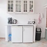 Στην κουζίνα έχει φούρνο μικροκυμάτων, ηλεκτρικό βραστήρα και ψυγείο.